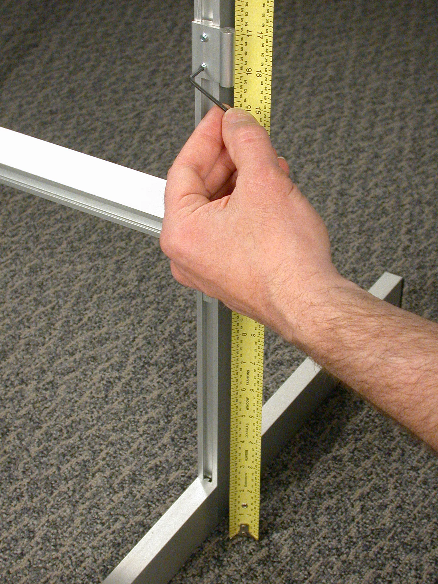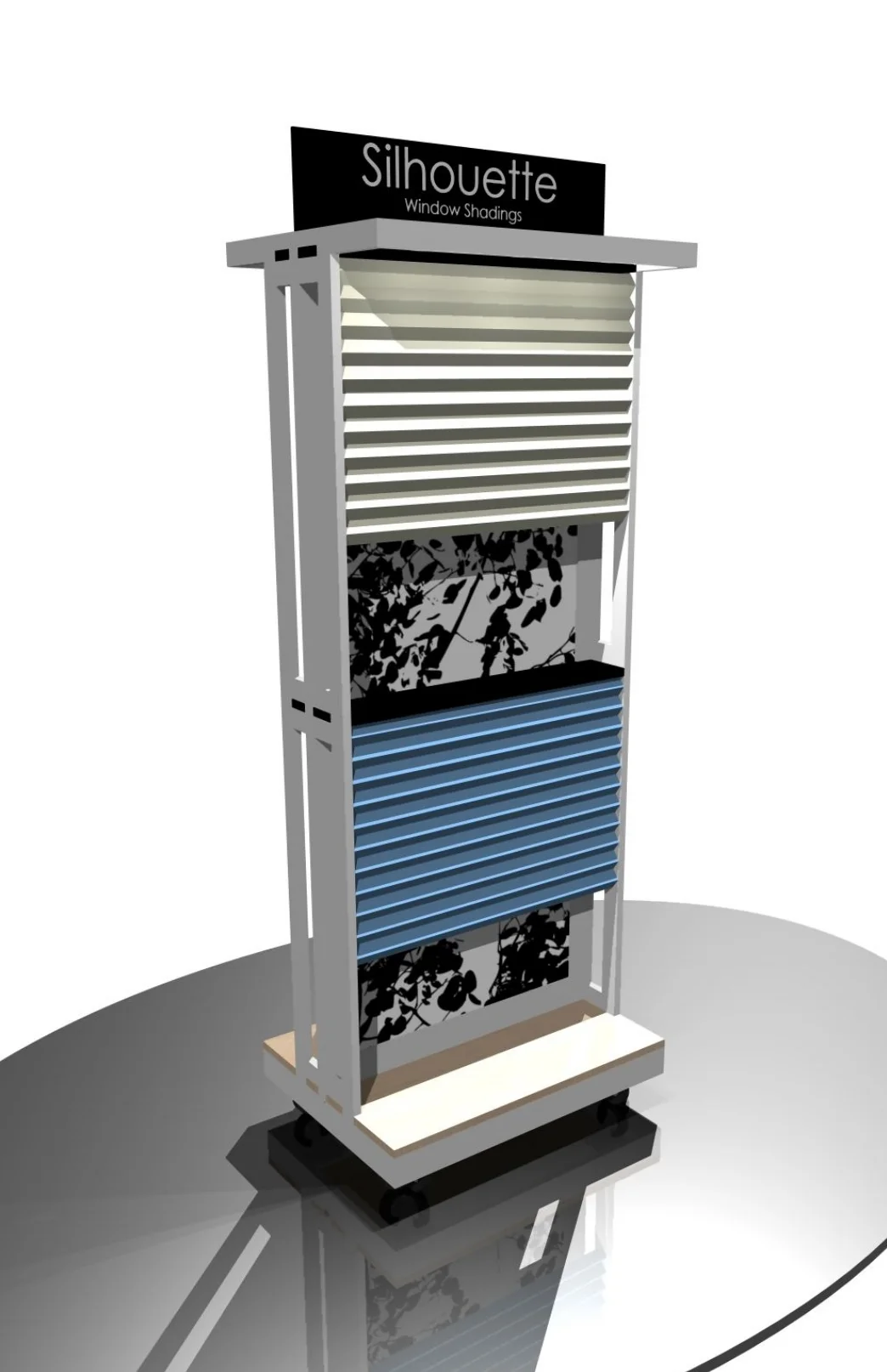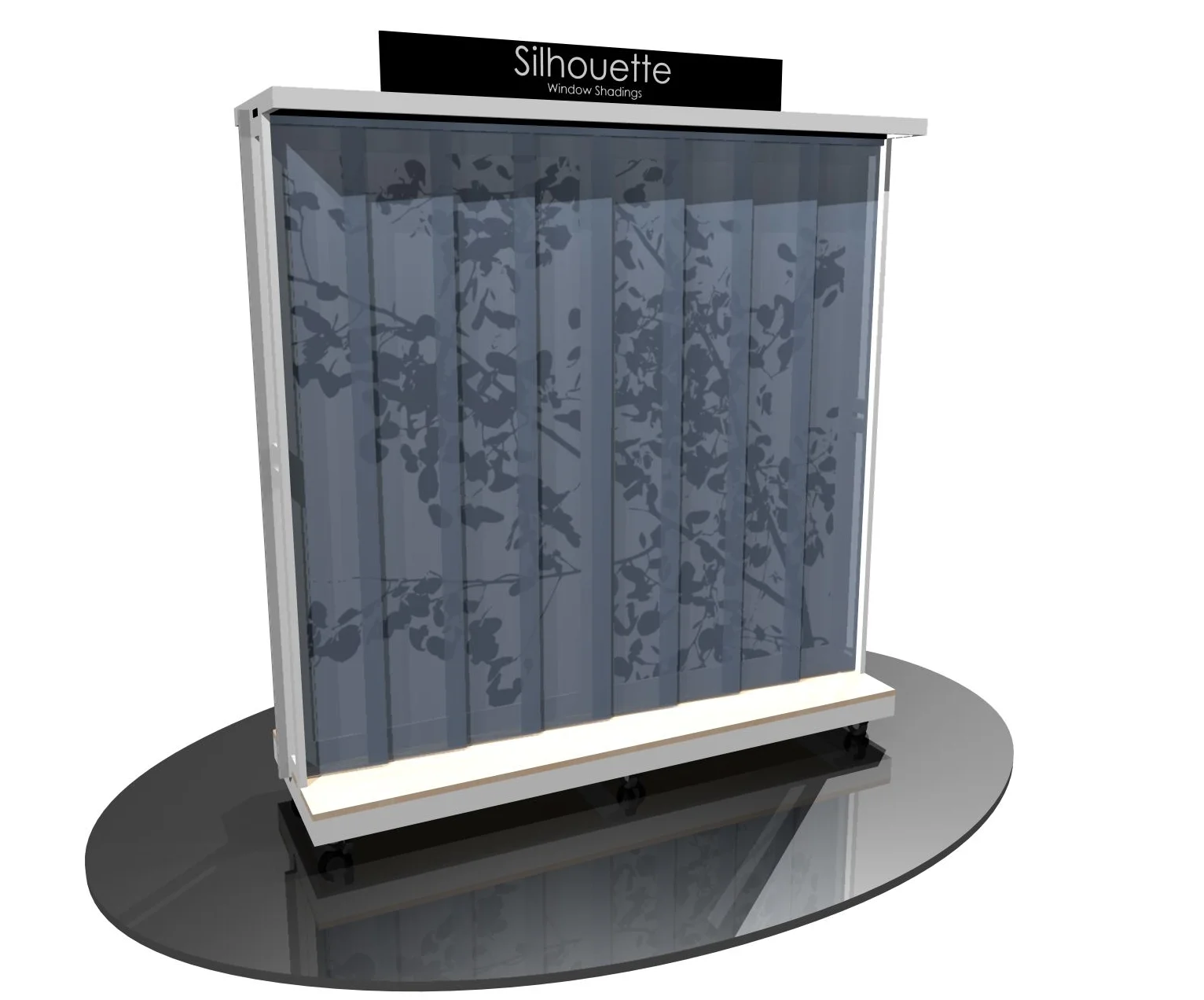 I designed the first set of displays for the Premieres program for Hunter Douglas when I still owned Chameleon Studios in 1998. The original set of displays consisted of two bi-fold frames that were constructed of welded 1" by 2" aluminum tube. The space between the two frames created a place for a large vertical window covering. This display, and all subsequent designs, had about a five year life span.